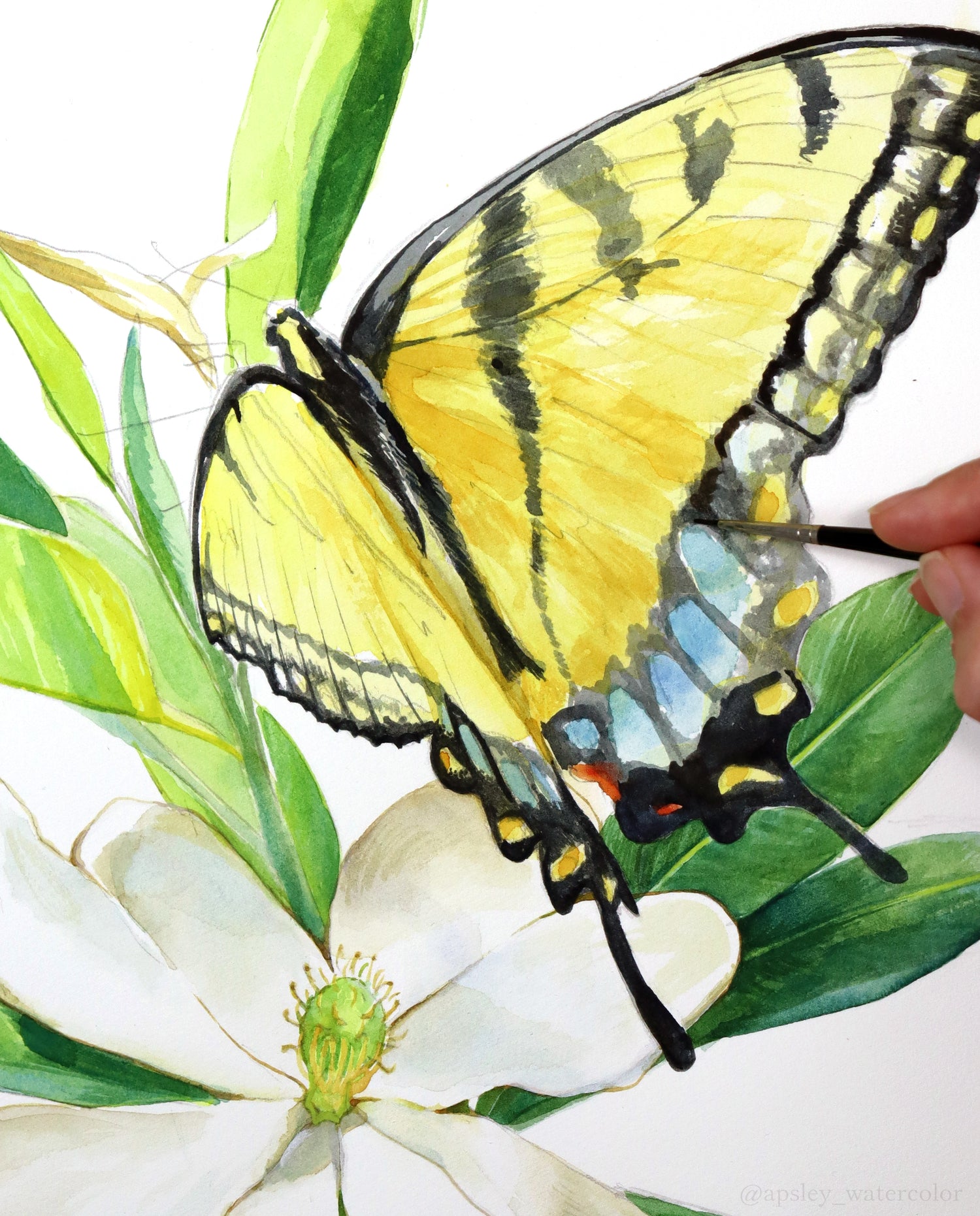 - Painted on 140lb hot press watercolor paper, unless otherwise noted, using artist grade watercolors