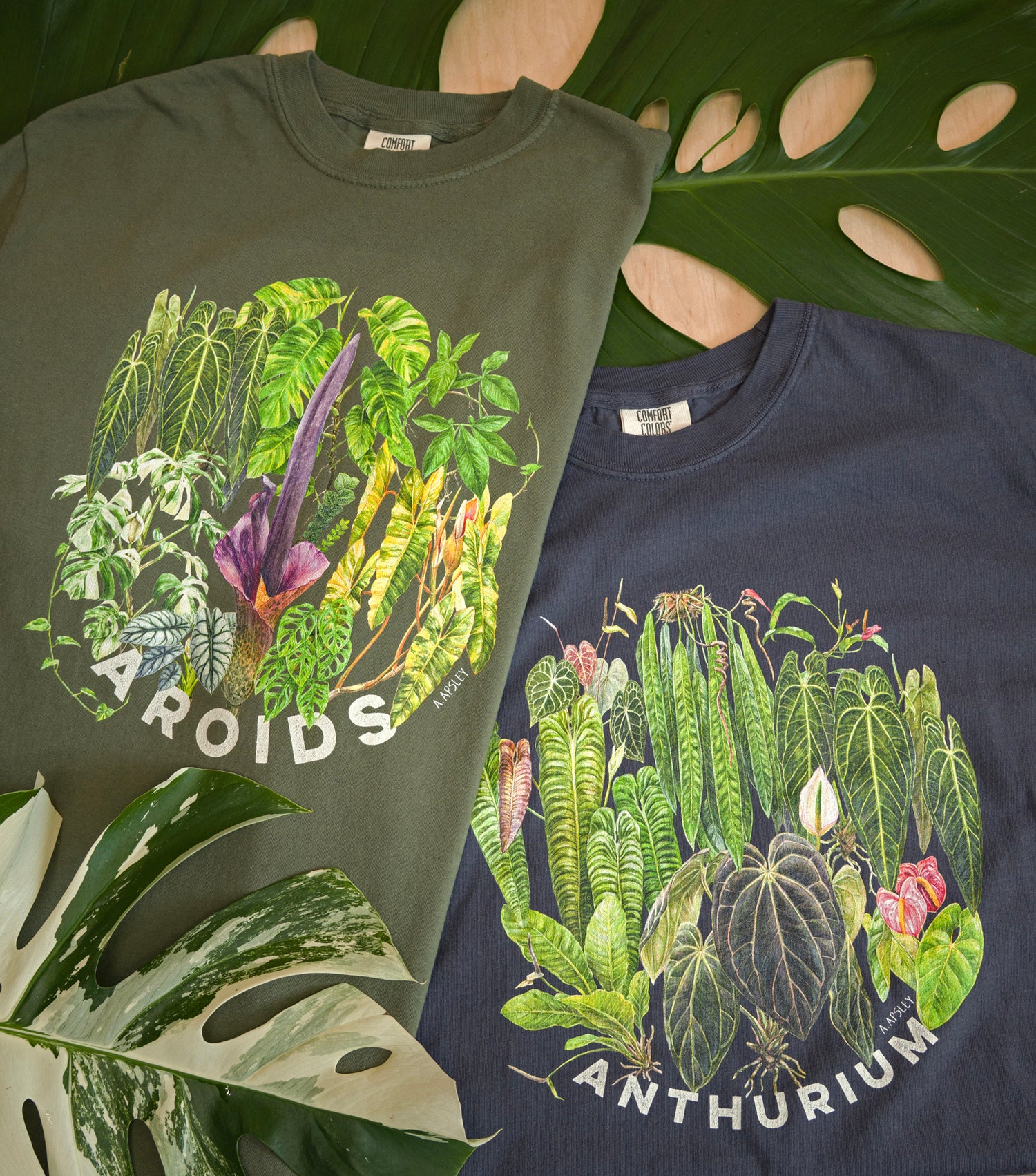 Featuring vivid reproductions of Aaron's illustrations, printed on soft garment dyed 100% cotton tees.