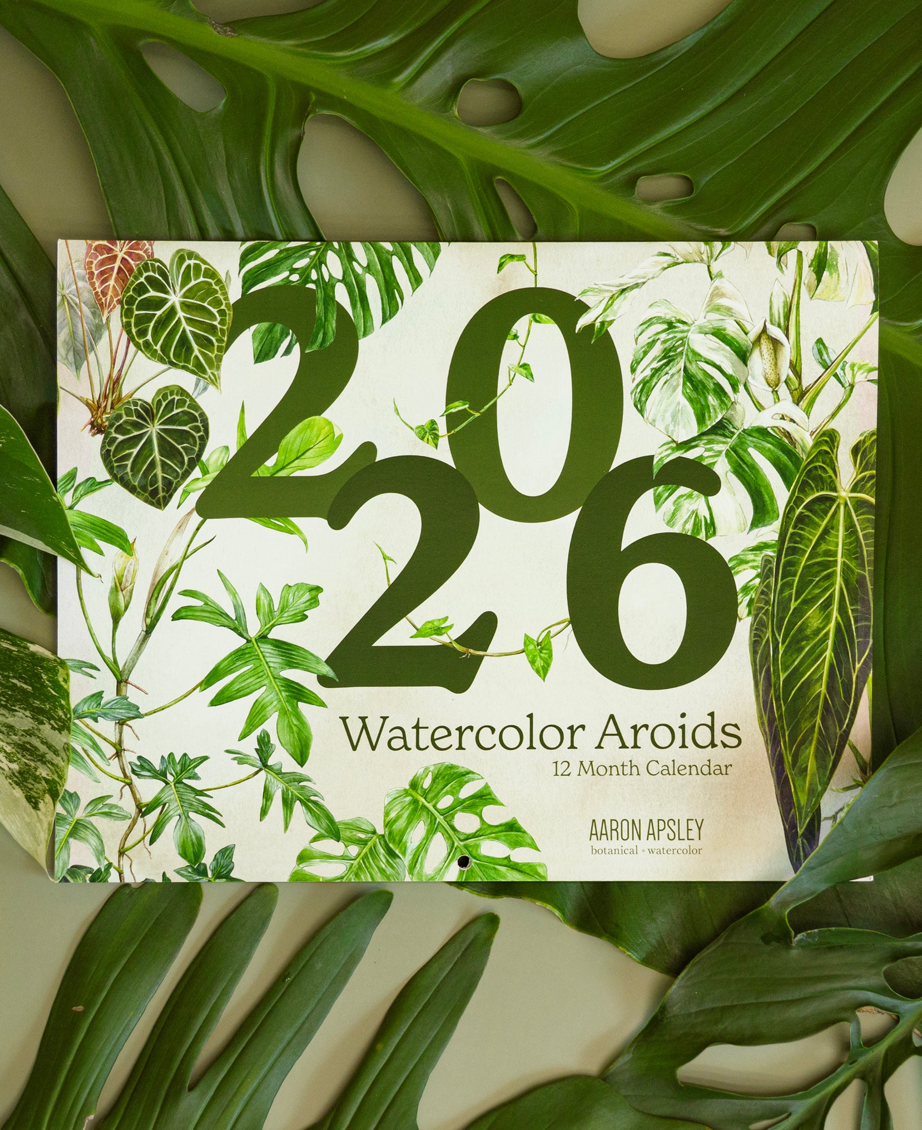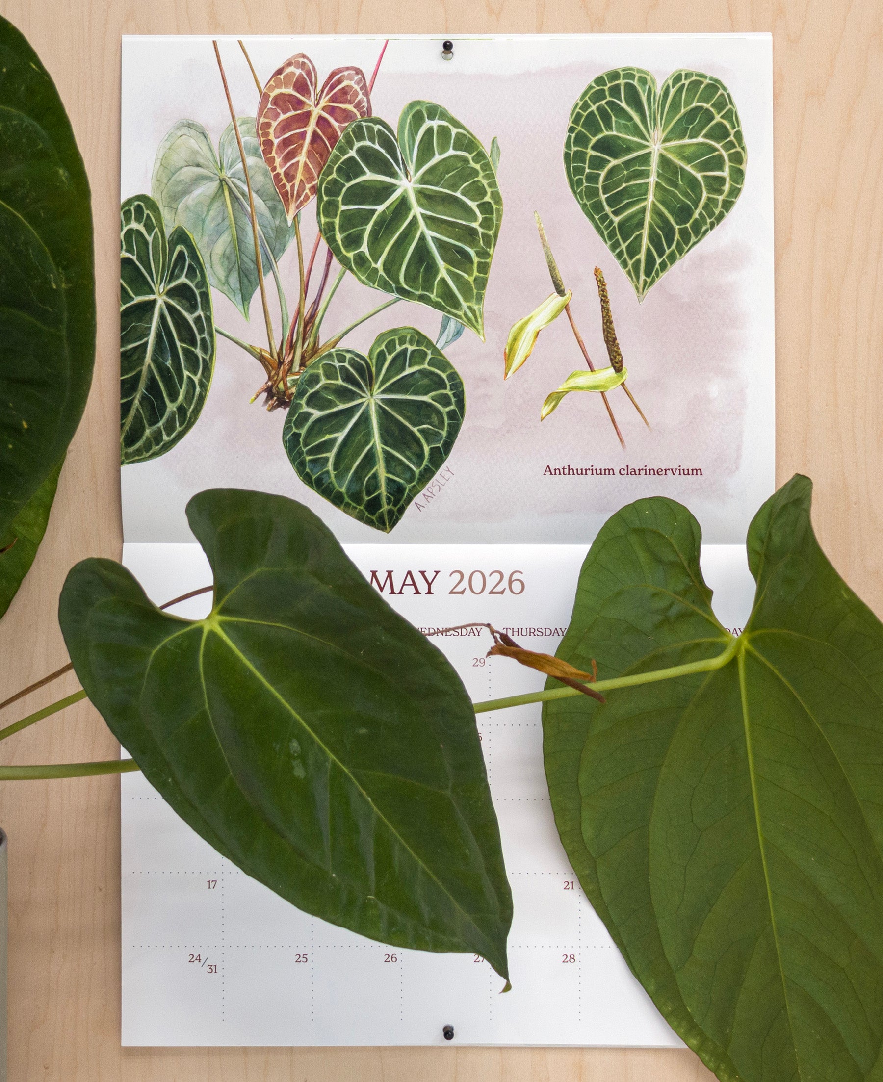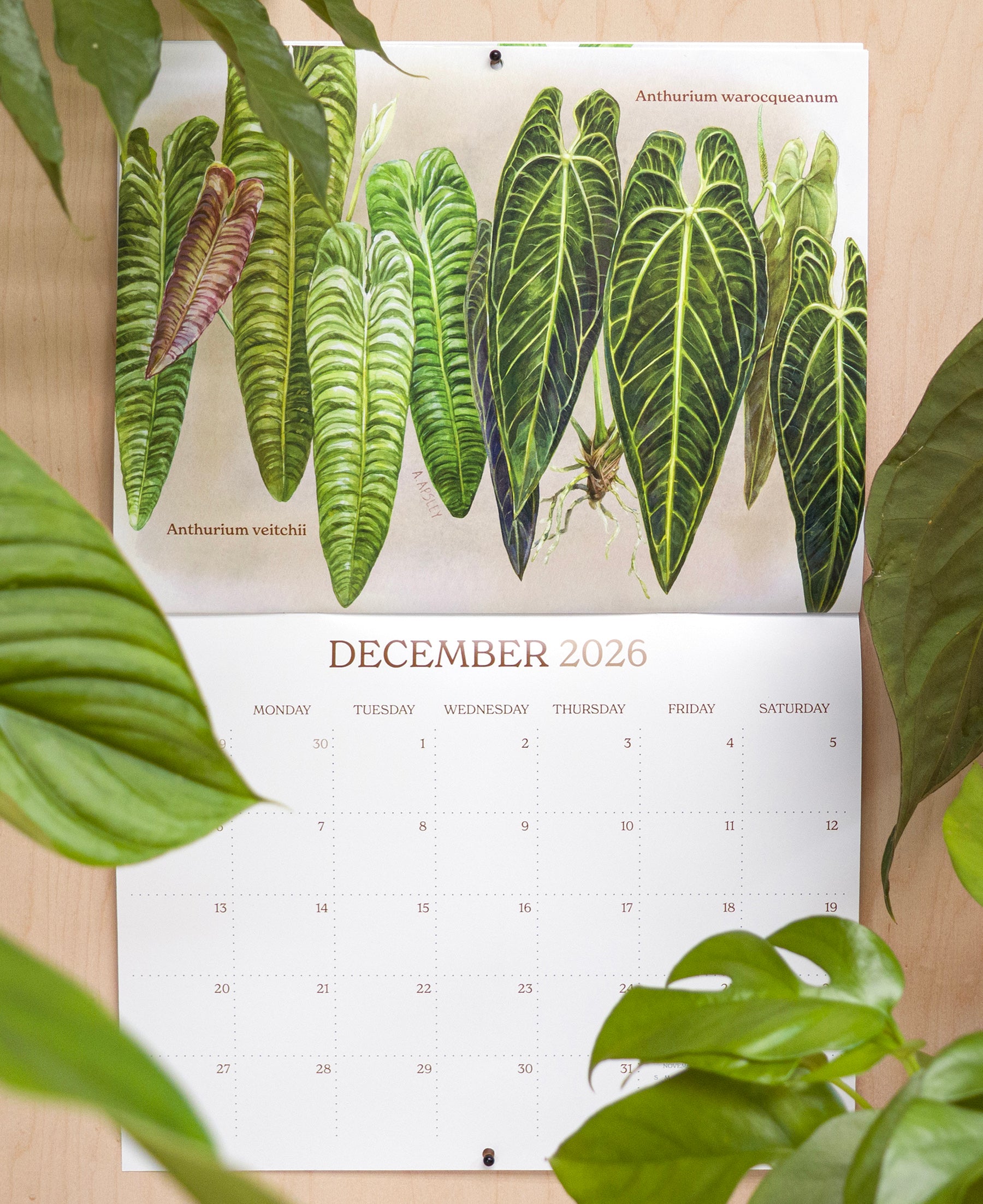 This 2026 wall calendar features twelve pages of illustrations of popular Aroid plants: