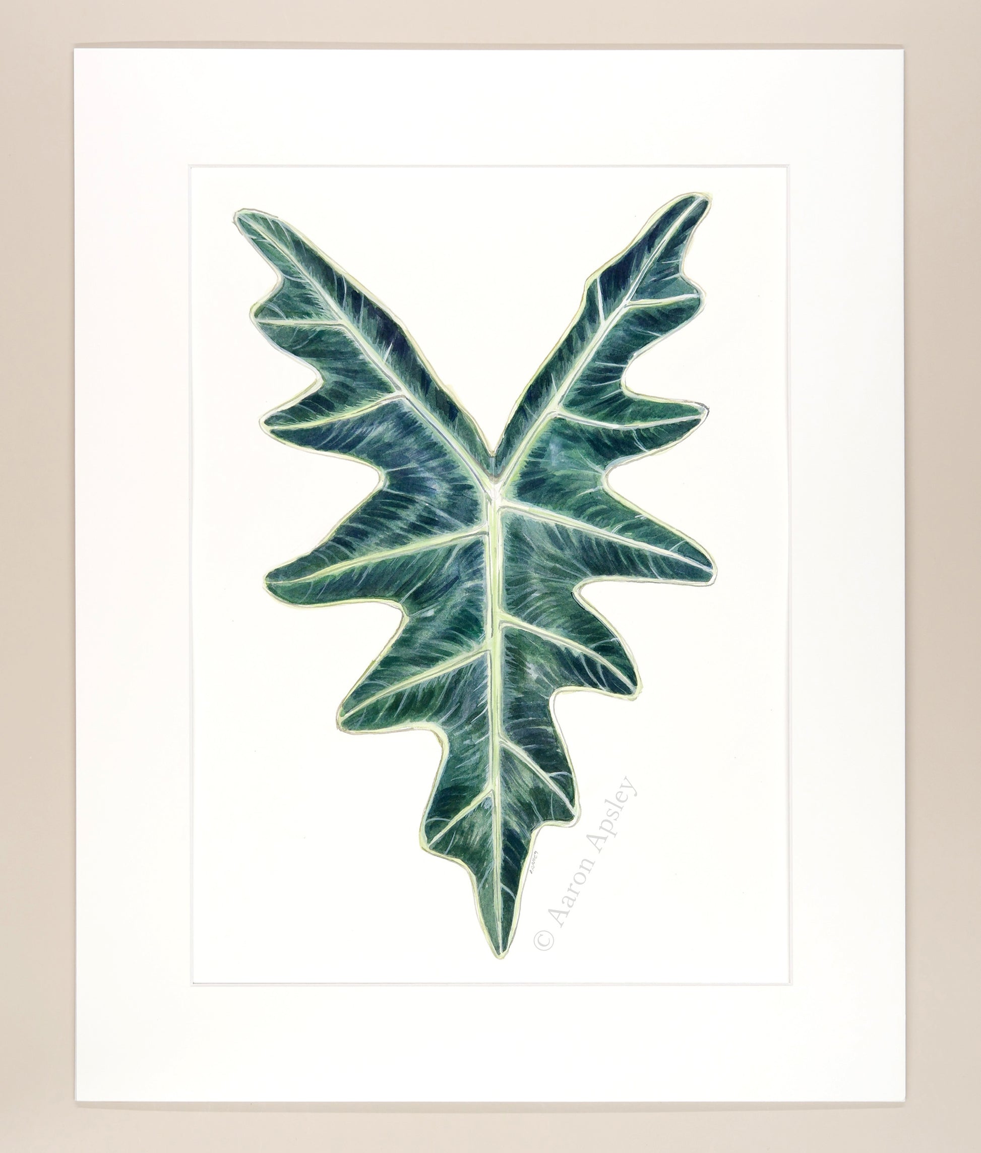 Study of an Alocasia sanderiana 'Nobilis' leaf. I painted this leaf as part of a series for my Alocasia Species Print.