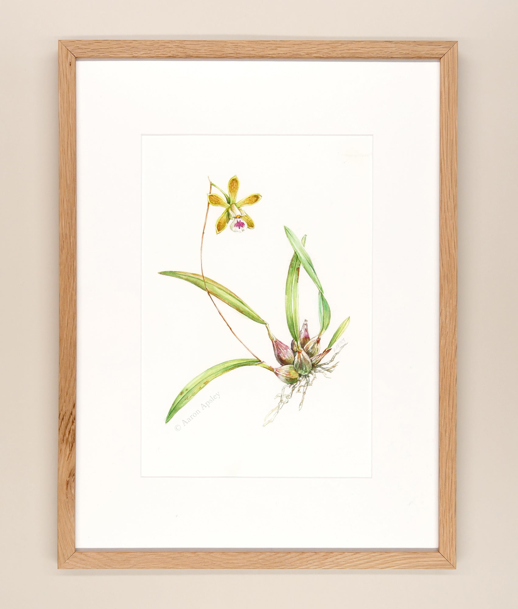 Study of a flowering Encyclia tampensis, also known as the Florida Butterfly Orchid. I painted this from life, from one of my own blooming plants.