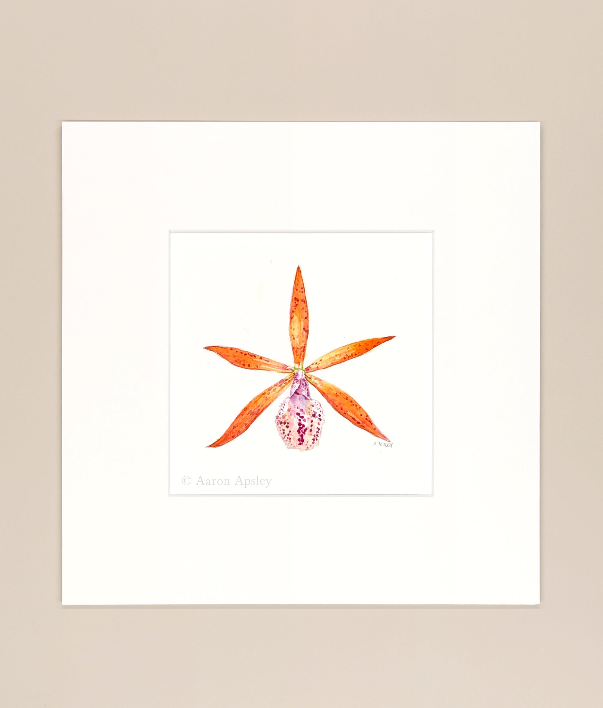 Study of an Encyleyvola Jairak Canary hybrid orchid flower. This orchid is a hybrid of Encyclia phoenicea and Brassocattleya Richard Mueller. Painted from observation of one of my own plants.