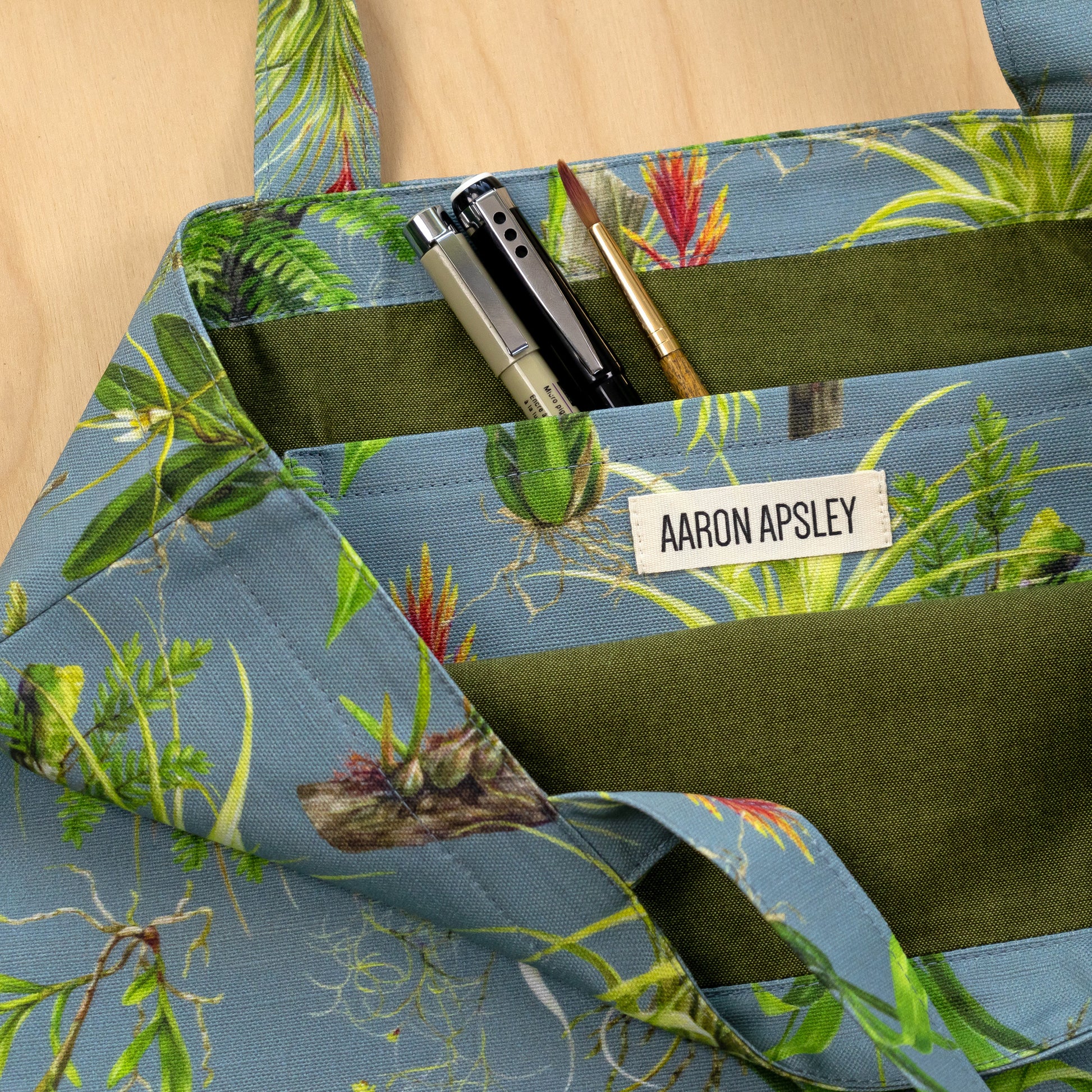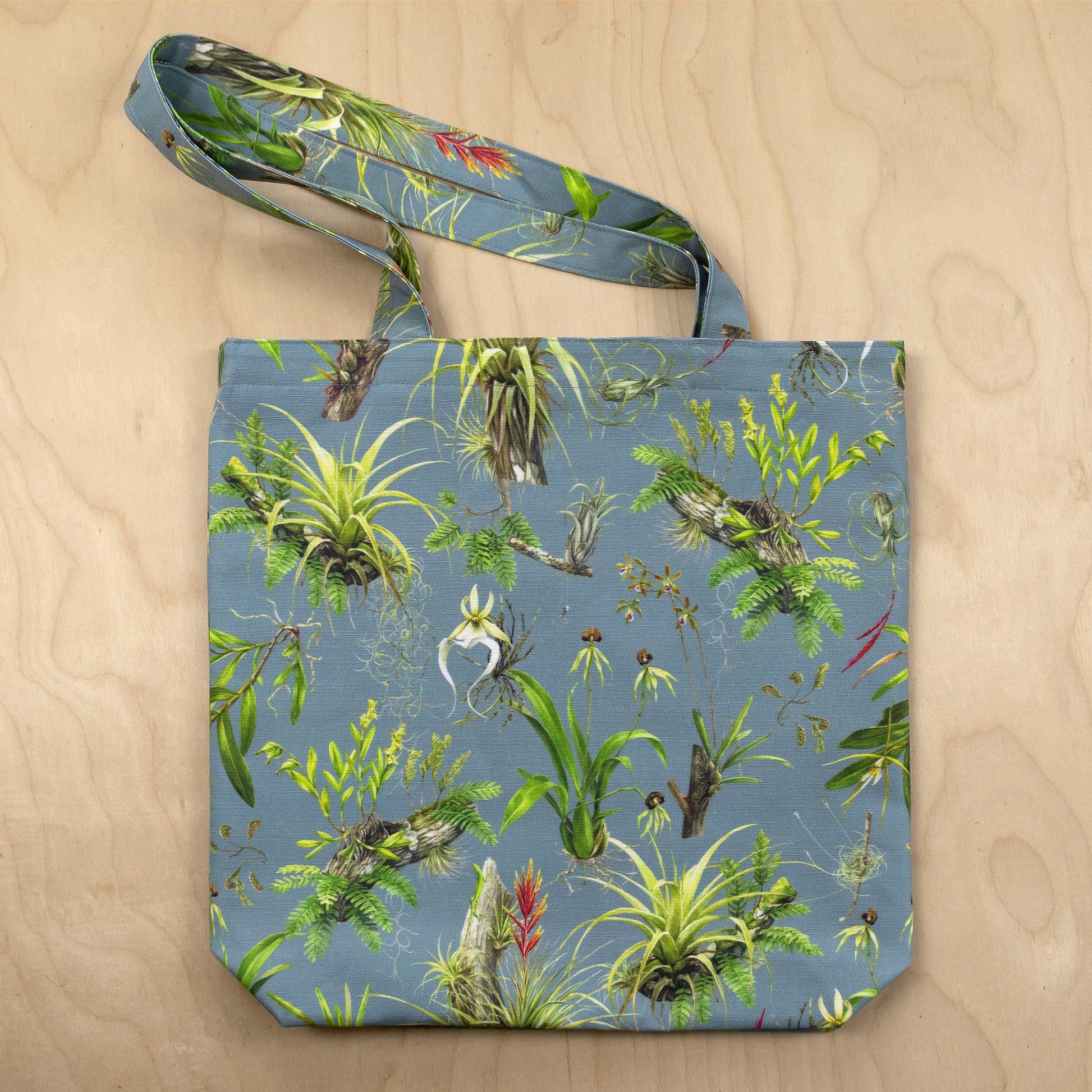 This tote bag features epiphytes native to Florida, including many orchid and tillandsia species. All illustrations were originally painted by Aaron in watercolor.