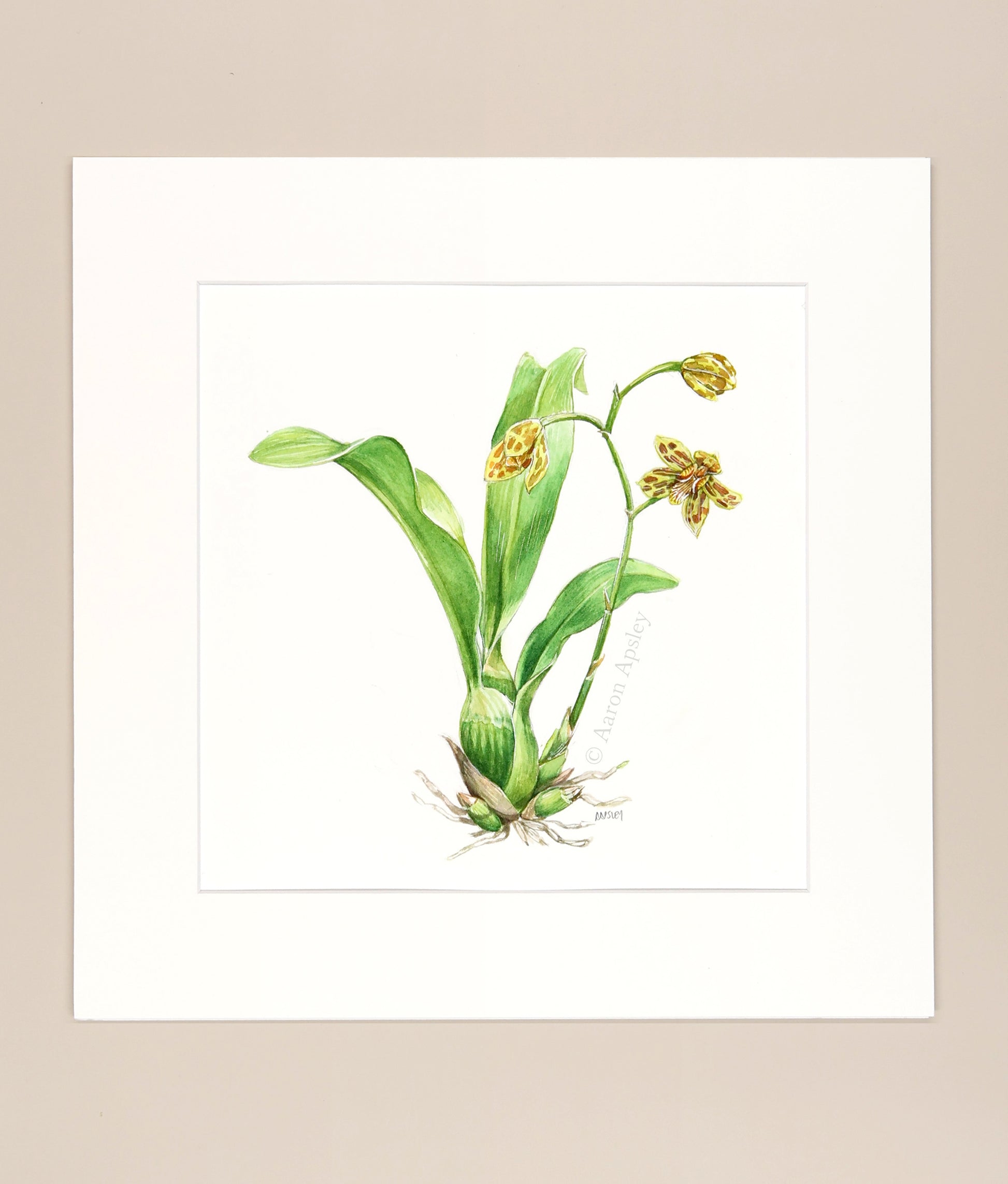 Study of a flowering Grammatophyllum scriptum orchid, painted from life.