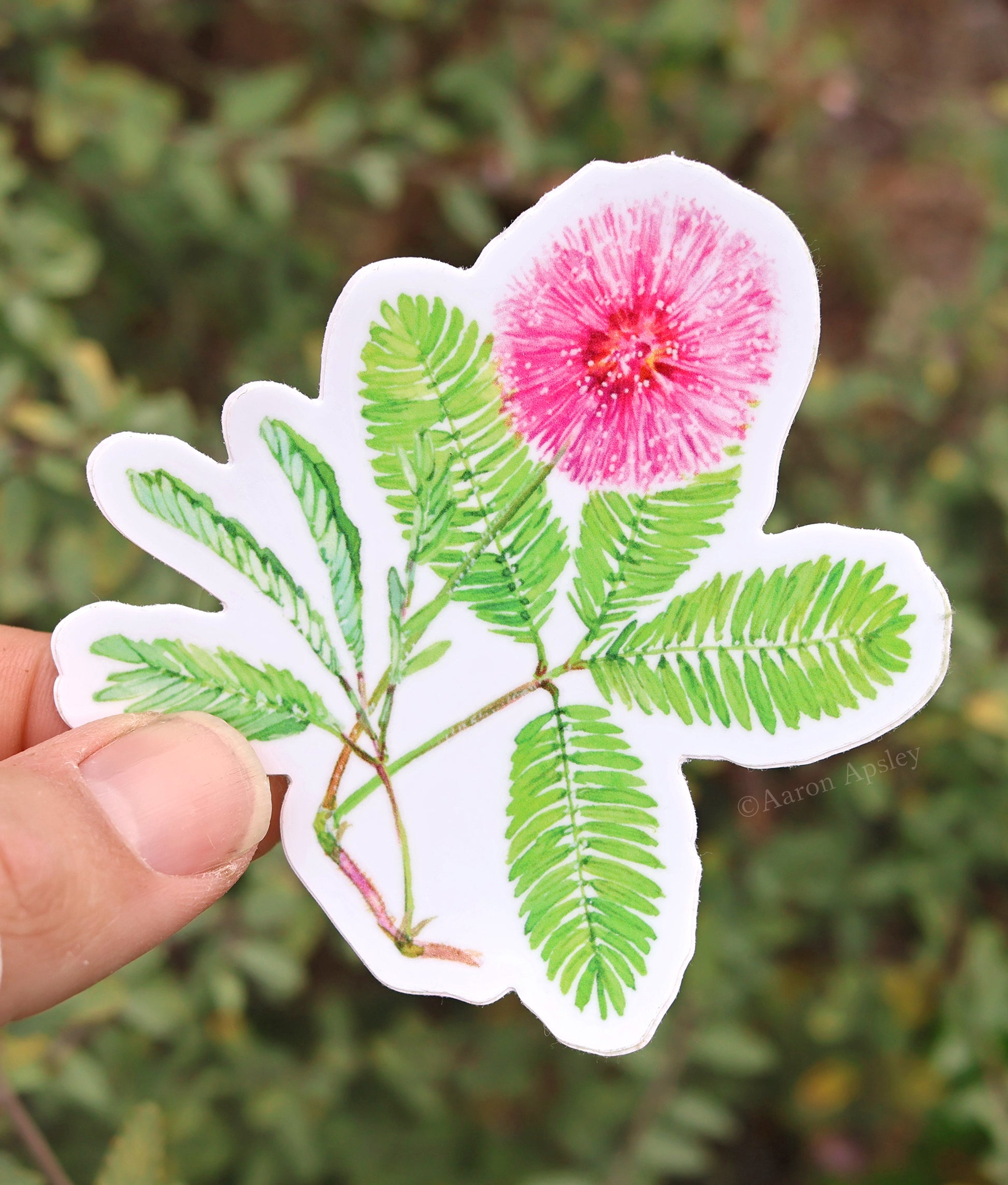 A sticker of Mimosa pudica, commonly known as the sensitive plant. When this plant is touched, its leaves fold in, and then reopen a few minutes later.