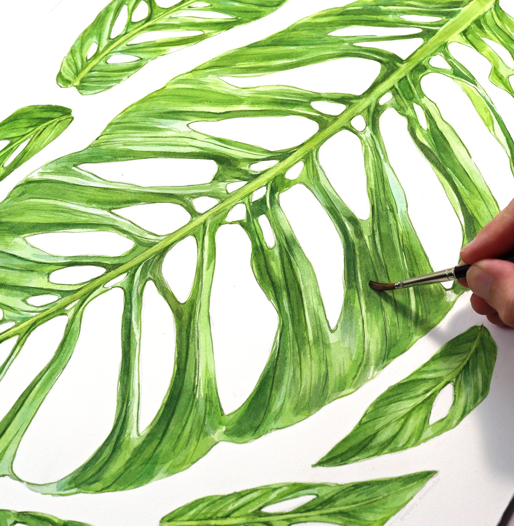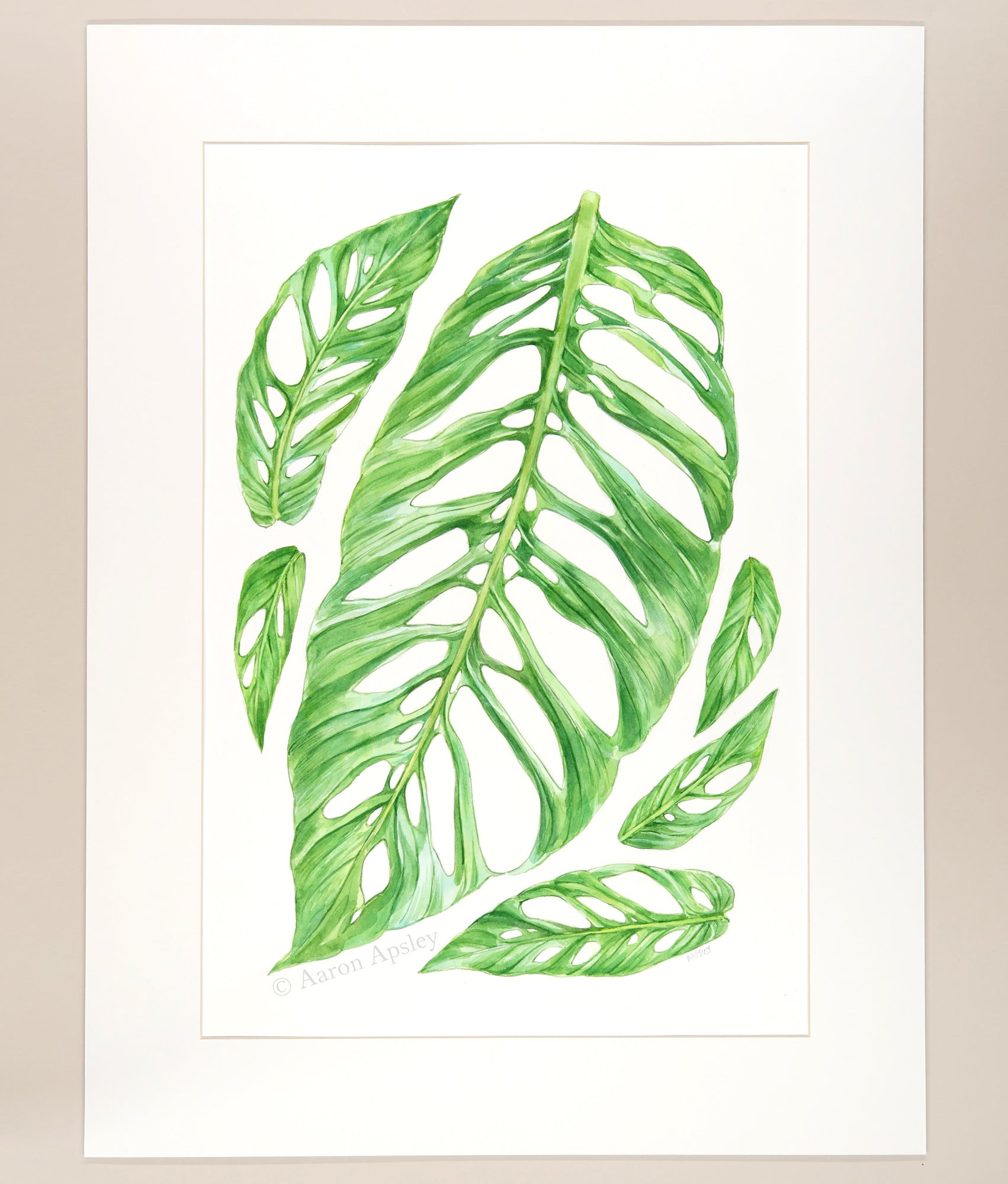 Study of Monstera adansonii, showing the progression of the leaf shape as it matures.