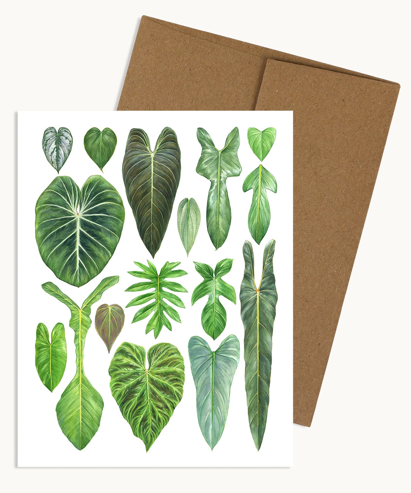 A collection of watercolor studies of leaves in the Philodendron genus.