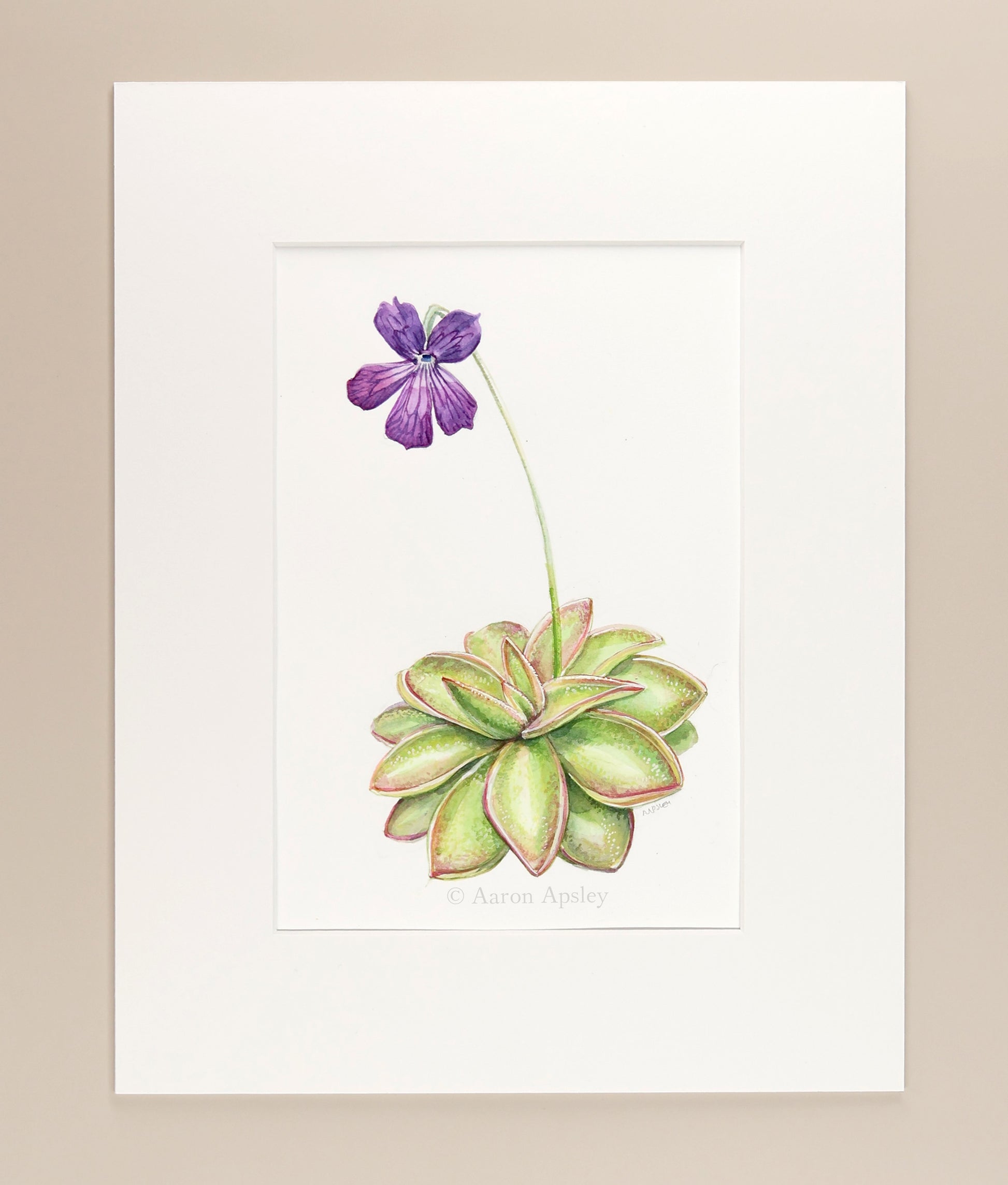 Study of a flowering Pinguicula 'Seductora', a carnivorous plant commonly known as a Butterwort. This painting was done as part of a series for my Carnivorous Plants Print.