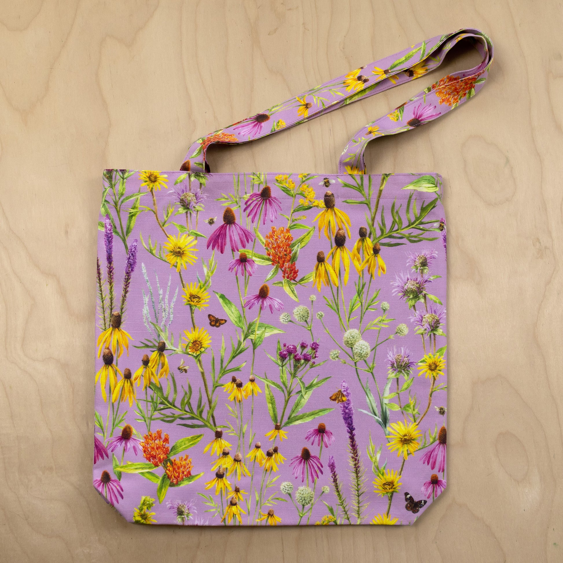 This tote bag features wildflowers native to prarie habitats in North America. All illustrations were originally painted by Aaron in watercolor.