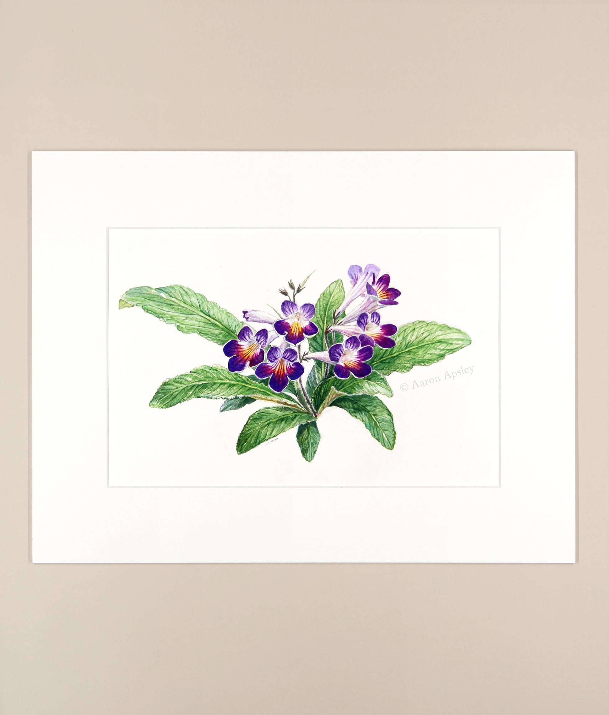 Study of a flowering Streptocarpus. I painted this from life at the 2023 Philadelphia Flower Show.