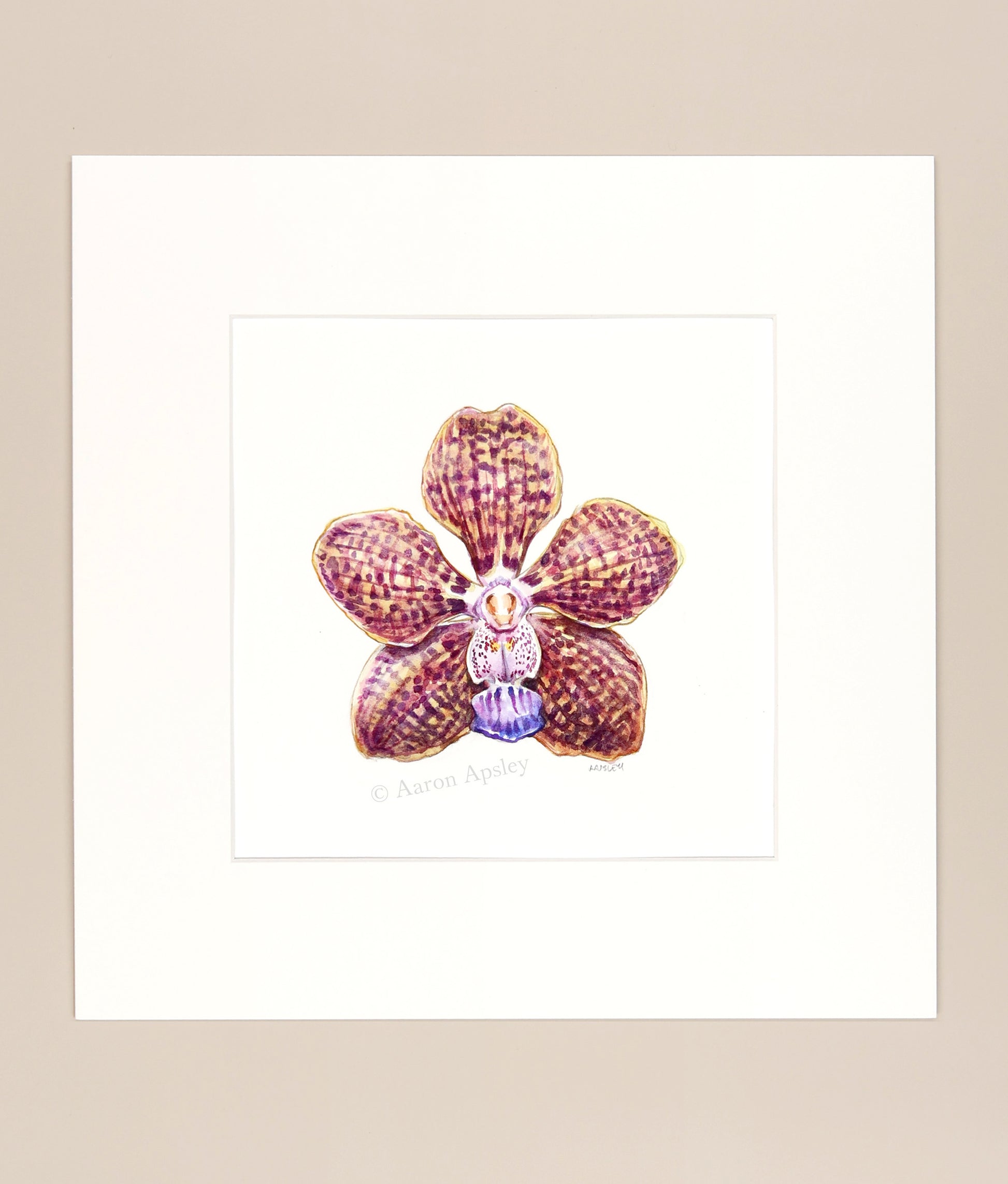 Study of a Papilionanda Mimi Palmer orchid flower, a hybrid of the species Vanda tessellata.